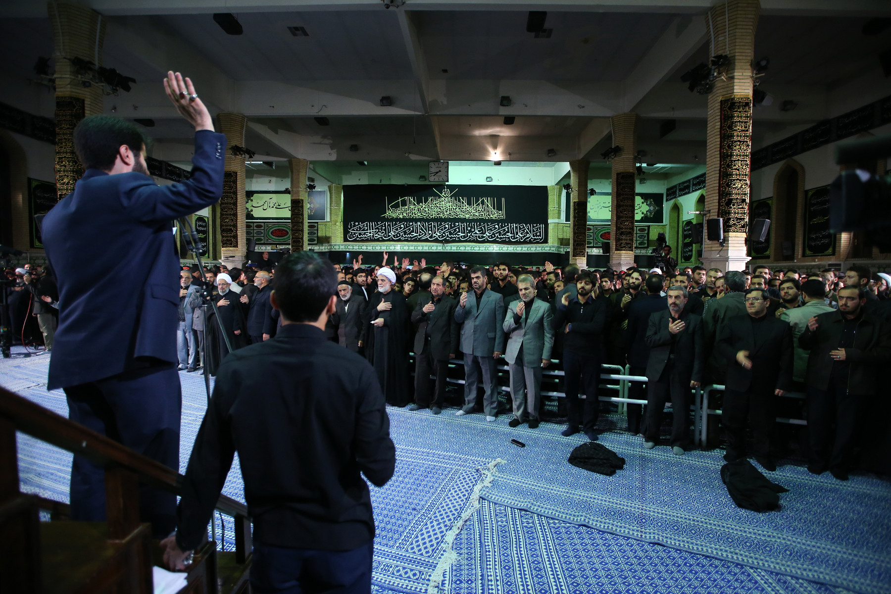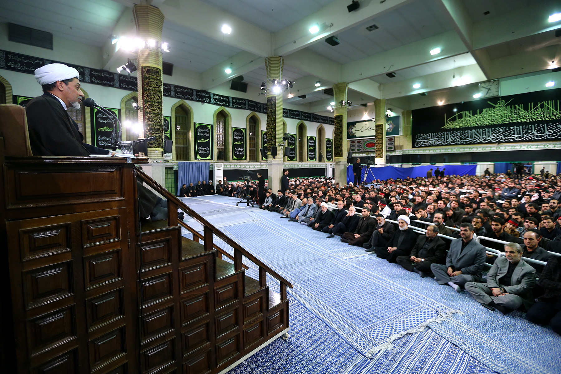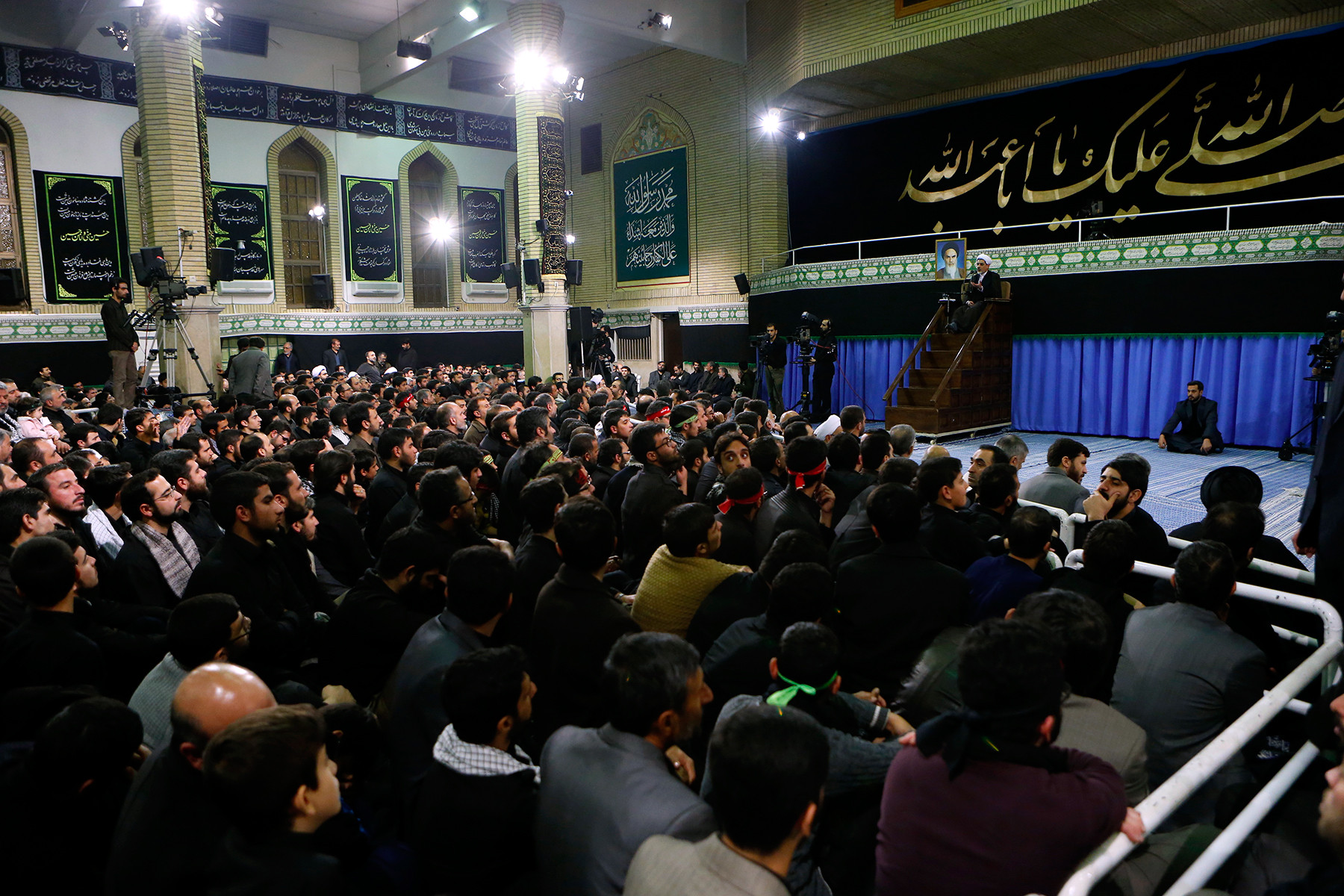 In Muharram 2014, Supreme leader of Iran held some Majalis in his Husseiniye. In these meetings, some prominent Shia mullah speaks about Ashura uprising and scarifices of Imam Hussein and his companions. Then he talks about disasters imposed on Hussein (AS), his followers, women and daughters and people cry on these sorrows. After this, a Maddah sings some poetry and people mourn for Imam Hossein and his companions in Karbala. Typical Mourning in Iran is striking on chest with hands, known as SinehZani. Some other types of mourning like Tatbir (Self-mutilation, Flagellation or GhameZani) which may be seen in other countries like Afghanistan, Pakistan and India are forbidden in Iran, due to the Fatwa of Imam Khamenei.